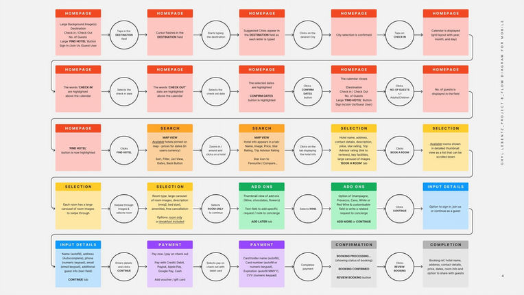 My job was to simplify this process and design an app that was easier to flow through, focussing specifically on the hotel booking process: how users search for and book hotel rooms online. The goal was to increase conversion rates and allow the user to easily and successfully flow through the booking process. The final part of the the project was delivering a mid-fidelity and clickable prototype that could be tested with users, along with a detailed set of annotated wireframes for handover. My strategy and approach to the process covered 4 phases...